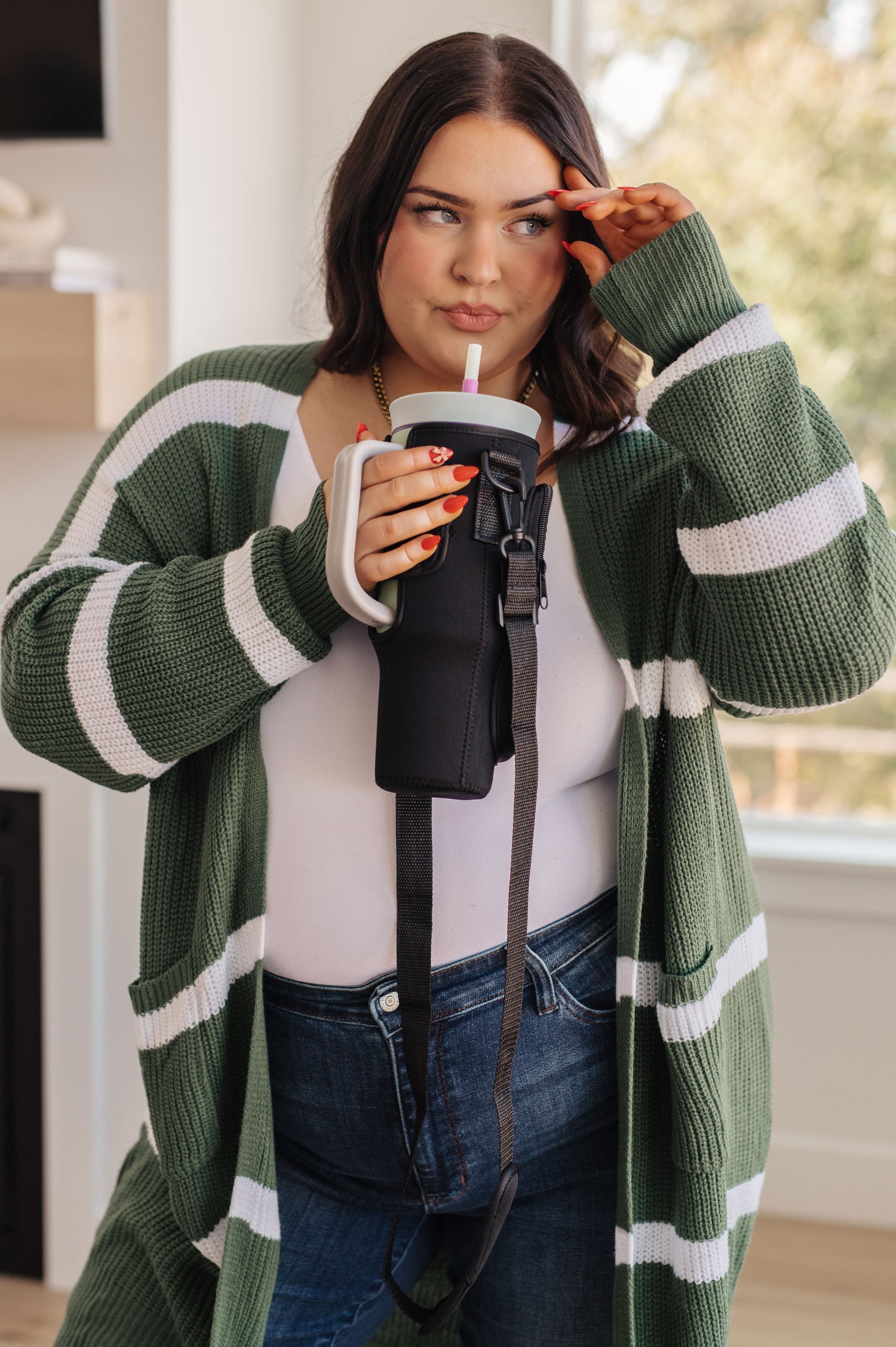 Introducing our 40 Oz Tumbler Sleeve in Black – a sleek, scuba fabric accessory designed for your on-the-go lifestyle. Stay organized with a zip pocket for your cell phone, and a key and card pocket on the front. The adjustable shoulder strap ensures comfort, while the Velcro closure adapts to handles or no handles.
