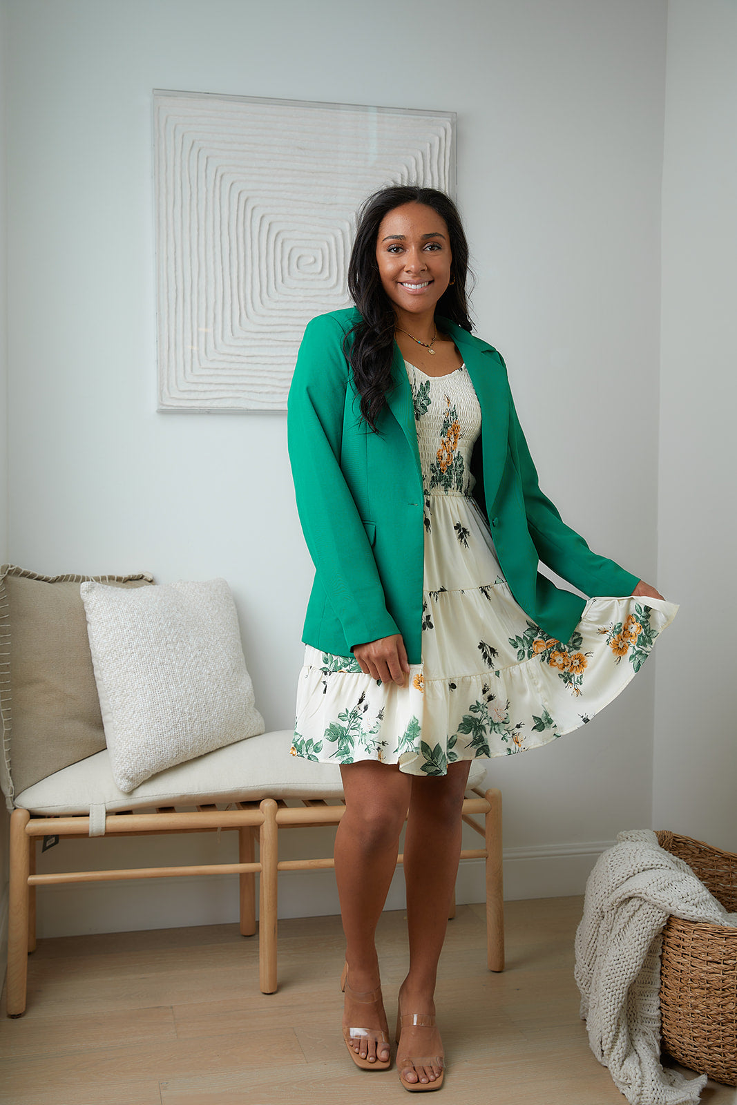 Be the best dressed boss at the office with the Business as Usual Blazer! Tailored to perfection and designed with a button front closure, flap pockets, and fully lined interior — this blazer is all business. Plus, it's in the perfect shade of rich green to add a splash of springtime fun to your look.