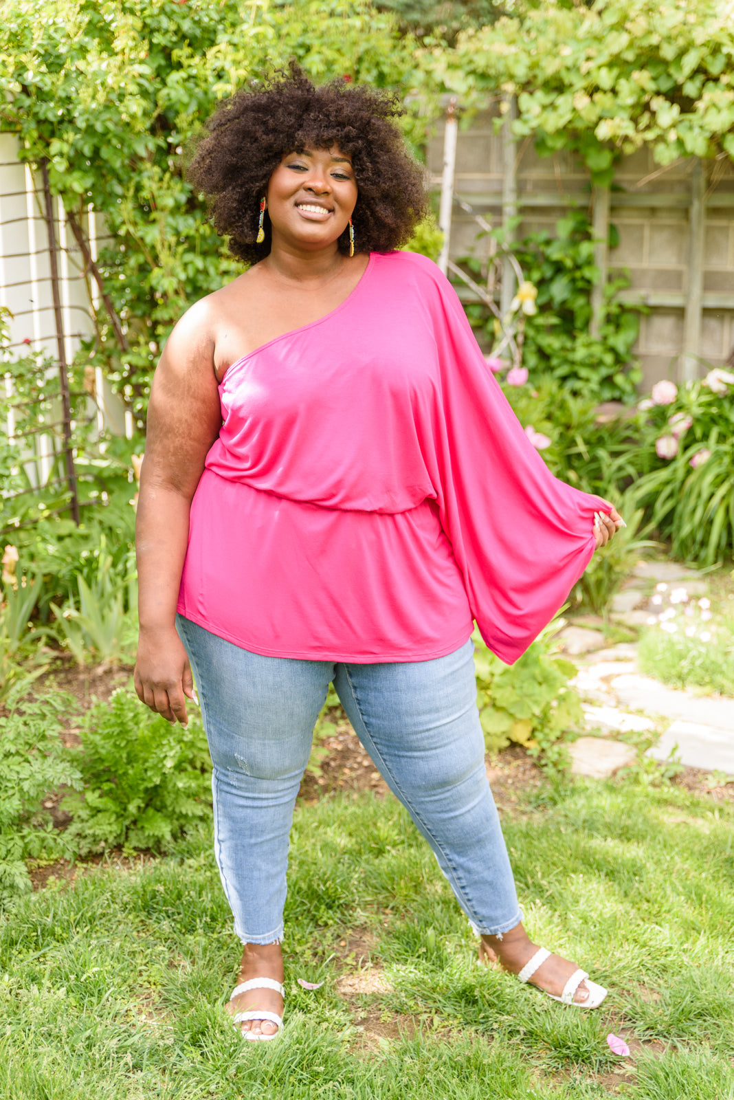 We are head over heels for this flirty top! The Call Me Maybe Shirt features a one shoulder silhouette with a kimono sleeve and peplum waist. The perfect top for date night, brunch, or your next event!