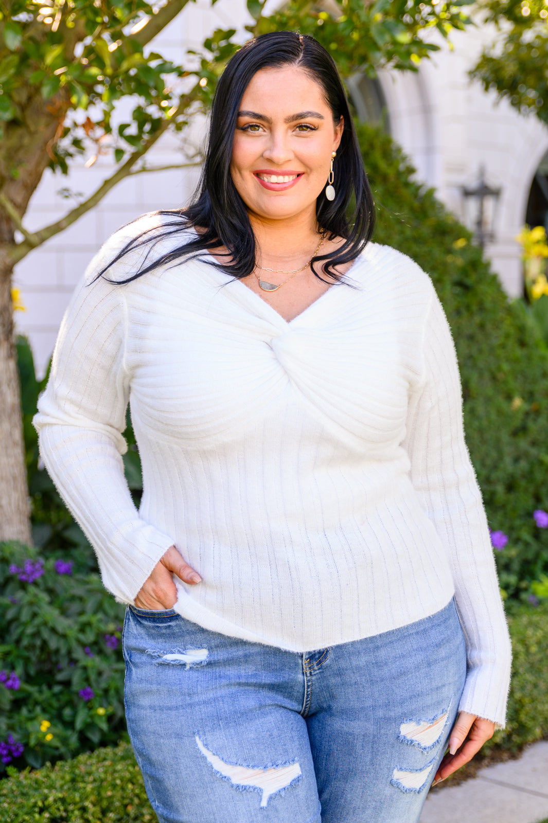 Sasha Fuzzy Twist Detail Sweater In Ivory